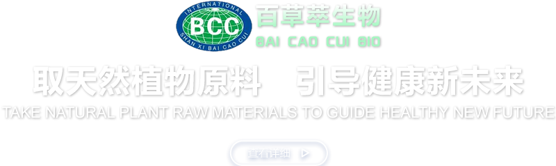 陜西百草萃生物科技有限公司,位于陜西省咸陽市秦都區(qū)濱河西路1號(hào)大秦御港城,公司成立于1996年,主要從事天然植物種植、研發(fā)、生產(chǎn)、加工、銷售為一體的高科技企業(yè)。主營(yíng)醫(yī)藥原料、保健品原料、化妝品原料,精細(xì)化工原料。公司致力于人類健康保護(hù)事業(yè)“ 以科技為動(dòng)力,以質(zhì)量求生存” 的本質(zhì),依托陜西高新科技技術(shù)人才和科研優(yōu)勢(shì),已形成多學(xué)科、全方位、高層次的技術(shù)管理精英團(tuán)隊(duì)。充分利用秦巴山區(qū)的天然藥物資源,歷經(jīng)多年發(fā)展為打造百草萃生物品牌奠定了基礎(chǔ)。